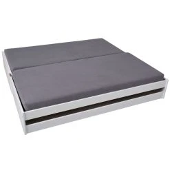 Lit 90x200cm Multifonction Barbara. Parfait pour une chambre d’amis ou une chambre d’enfants, Ce lit modulable vous permet de disposer jusqu’Ă 3 couchages simultanĂ©ment. Structure en pin massif vernis blanc. Sommiers Ă lattes inclus, matelas non inclus. Epaisseur matelas maximale conseillĂ©e : 12cm.