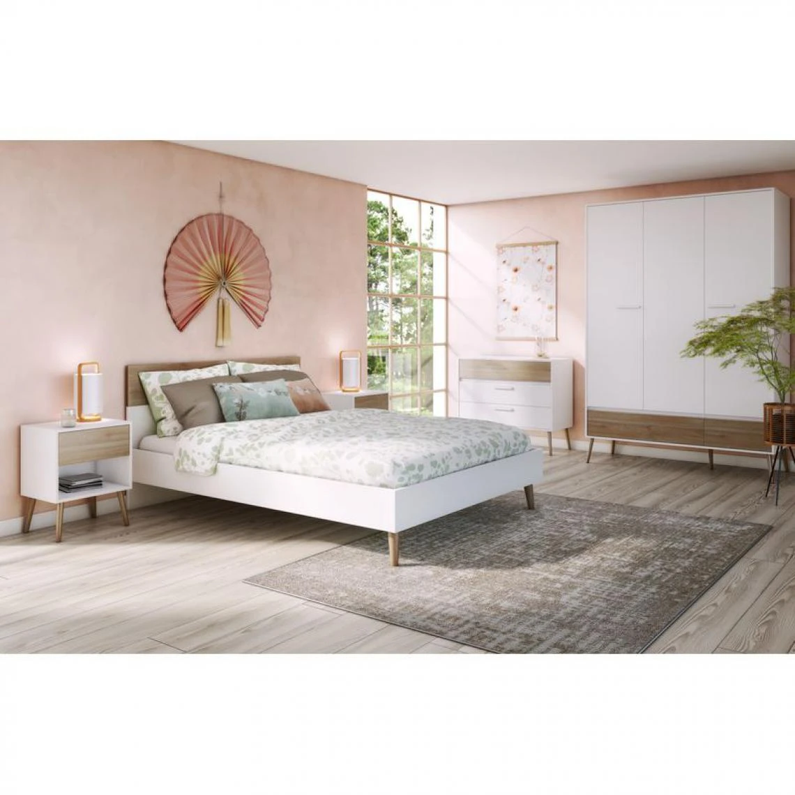 Des pieds en chĂȘne massifConçu pour une petite chambre de deux personnes et disponible en largeur 160 cm, ce lit 140 x 190 cm conviendra Ă©galement Ă une personne seule qui souhaite disposer d’un large espace de couchage. Les pieds en chĂȘne massif de ce lit blanc et imitation chĂȘne, lui confĂšrent une excellente stabilitĂ©. Le matelas et le sommier sont vendus sĂ©parĂ©ment, ce qui vous permet de choisir l’Ă©paisseur, la densitĂ© et l’accueil qui favoriseront la qualitĂ© de votre sommeil. ComplĂ©tez l’achat de ce lit avec les autres Ă©lĂ©ments de mobilier de la gamme ALBORG.Une ambiance zen dans la chambreLes panneaux de particules de ce lit ALBORG ont Ă©tĂ© revĂȘtus de papier dĂ©cor imitation chĂȘne du Japon et blanc au niveau de la tĂȘte de lit. Il s’intĂ©grera avec beaucoup de charme dans une ambiance d’inspiration zen ou scandinave, grĂące Ă ses teintes claires et naturelles, ainsi qu’Ă Ă ses pieds obliques.