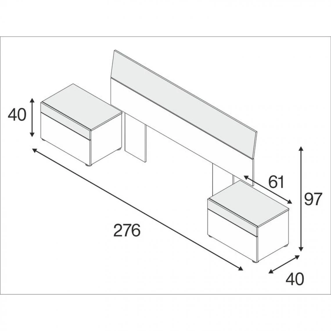 2 chevets 176 x 54 x 6 cm + 61 x 40 x 40 cm bénéficie en outre d’une solide structure en panneaux de particules d’une épaisseur de 15 mm.
