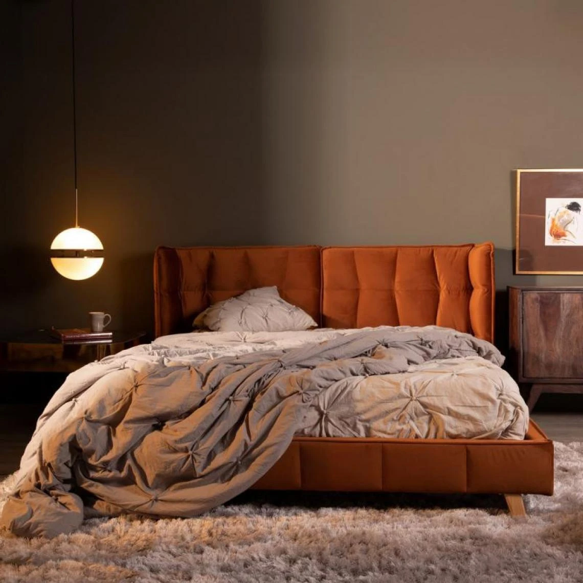 Points forts Tousmesmeubles Cadre + TĂȘte de lit 160*200 cm Tissu Terracotta – ALBORG